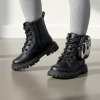 Bota infantil perfeita para compor looks modernos e cheios de personalidade. O modelo estilo coturno une conforto, resistência e um toque fashion que foge do óbvio. Destaques do produto• Confeccionada em material sintético de alta qualidade, com acabamento fosco e toque macio.• Fechamento por cadarço frontal e zíper lateral, facilitando o calce e garantindo ajuste seguro.• Solado tratorado robusto, antiderrapante, ideal para acompanhar a rotina das crianças com estabilidade.• Detalhe lateral em material peluciado com estampa animal print, trazendo charme e um ar fashionista.• Logo aplicada no detalhe lateral, agregando estilo e identidade ao modelo.• Design versátil que combina perfeitamente com vestidos, conjuntos, looks juninos ou produções casuais. Ideal para passeios, festas, produções estilosas e para quem gosta de misturar delicadeza com personalidade.