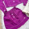 TECIDO: JEANS CONJUNTO JEANS COMPOSTO POR JAQUETA/CASACO JEANS E SAIA JEANS NA COR VIOLETA/LILAS,LILÁS,ROXOConfeccionado em tecido JEANS  proporcionando um caimento incrível e sofisticado, possui gola redonda, comprimento médio,manga longa    completa o look dos sonhos!MODA OUTUNO,INVERNO,CASUAL,MODINHA,BLOGUERINHA,DIA A DIA,DIA,FRIO,MODA INVERNO,CASACO,CASAQUINHO,JAQUETA   * Medidas podem variar em até 4cm * Caso queira o vestido mais armado, recomendamos o uso do saiote ou anágua de armação, disponível no nosso site na categoria acessórios. * Tiara vendida separadamente, disponível em nosso site na categoria acessórios. * Calçados vendido separadamente, disponível em nosso site na categoria calçados. * LEMBRANDO QUE PODERA HAVER VARIAÇÃO DE TONALIDADE DO PRODUTO DEPENDENDO DA TELA DO SEU DISPOSITIVO
