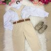Conjunto Meninos Miss Cherry Leo Suspensorio Palha – Bege