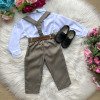 Conjunto Meninos Miss Cherry Leo Suspensorio Verde Militar
