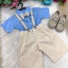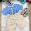 Conjunto Miss Cherry Henry Azul Suspensorio Bege