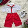 Conjunto Infantil Social Henry – Miss Cherry Deixe o pequeno cheio de charme e elegância com este conjunto infantil perfeito para ocasiões especiais! Composição do look: Camisa vermelha de manga curta com botões frontais; Shorts bege social; Suspensório bege ajustável; Gravata borboleta bege, dando o toque clássico ao visual. Tecido Camisa Linho 100% Algodão Tecido Shorts Twill Colorido 100% PoliesterDestaques do produto: Conjunto fresquinho e confortável, ideal para festas, aniversários, casamentos e batizados; Combinação moderna e delicada, que valoriza o estilo infantil sem abrir mão da sofisticação; Produzido em tecido leve e macio, pensado para o bem-estar da criança. Perfeito para registrar momentos únicos com muito estilo e elegância! Informações Importantes As medidas podem variar em até 2cm. Recomendamos sempre consultar a tabela de medidas antes da compra para evitar erros. Calçado vendido separadamente, disponível na categoria Calçados As cores do produto podem sofrer variações de tonalidade conforme a configuração da tela do seu dispositivo.