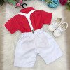 Conjunto Infantil Social Henry – Miss Cherry Deixe o pequeno cheio de charme e elegância com este conjunto infantil perfeito para ocasiões especiais! Composição do look: Camisa vermelha de manga curta com botões frontais; Shorts bege social; Suspensório bege ajustável; Gravata borboleta bege, dando o toque clássico ao visual. Tecido Camisa Linho 100% Algodão Tecido Shorts Twill Colorido 100% PoliesterDestaques do produto: Conjunto fresquinho e confortável, ideal para festas, aniversários, casamentos e batizados; Combinação moderna e delicada, que valoriza o estilo infantil sem abrir mão da sofisticação; Produzido em tecido leve e macio, pensado para o bem-estar da criança. Perfeito para registrar momentos únicos com muito estilo e elegância! Informações Importantes As medidas podem variar em até 2cm. Recomendamos sempre consultar a tabela de medidas antes da compra para evitar erros. Calçado vendido separadamente, disponível na categoria Calçados As cores do produto podem sofrer variações de tonalidade conforme a configuração da tela do seu dispositivo.