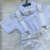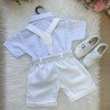 Este conjunto social infantil é a escolha perfeita para deixar os pequenos elegantes e confortáveis em eventos como casamentos, batizados, aniversários, formaturas e cerimônias em geral. Com um visual sofisticado, ele é ideal para quem busca estilo com praticidade. Detalhes do Produto: Camisa social branca de manga curta, confeccionada em microfibra 100% poliéster, com toque macio e caimento leve. Short preto em twill 100% poliéster, com acabamento moderno na barra dobrada. Acompanha gravata borboleta branco, suspensório branco com regulagem e cinto ajustável branco com fivela metálica. Itens Inclusos:CamisaShortGravata borboletaSuspensórioCinto Calçado não incluso – vendido separadamente. Disponivel em nosso site na categoria calçados meninosAs tonalidades das peças podem variar de acordo com as configurações de tela do seu dispositivo.Para garantir o ajuste ideal, consulte sempre a nossa tabela de medidas antes de finalizar a compra. As medidas podem apresentar pequenas variações conforme o lote de fabricação.