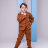 Conjunto composto por: Camisa social na cor branca manga Longa, gravata borboleta caramelo, cinto, Calça na cor caramelo e blaizer na cor caramelo Demais peças ou acessórios, não inclusos.   Material: Linho Calçados Vendindos Separadamente  * LEMBRANDO QUE PODERA HAVER VARIAÇÃO DE TONALIDADE DO PRODUTO DEPENDENDO DA TELA DO SEU DISPOSITIVO
