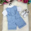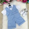 TECIDO: CAMISA BRANCA MICROFIBRA 100% POLIESTERTECIDO DO SHORTS TWILL COLORIDO 100% POLIESTER Conjunto composto por: Camisa social na cor Branca, gravata borboleta AZUL BEBÊ shorts na cor AZUL BEBÊ, Colete AZUL BEBÊ e Cinto PRETO Demais peças ou acessórios, não inclusos. Calçados Vendindos Separadamente * LEMBRANDO QUE PODERA HAVER VARIAÇÃO DE TONALIDADE DO PRODUTO DEPENDENDO DA TELA DO SEU DISPOSITIVO