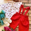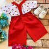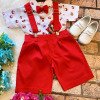 Conjunto composto por: Camisa Personagem, Shorts com suspensorio e gravata borboleta na cor Vermelha. Demais peças ou acessórios, não inclusos.