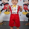 Conjunto composto por: Camisa Personagem, Shorts com suspensorio e gravata borboleta na cor amarela. Demais peças ou acessórios, não inclusos.