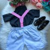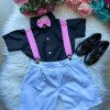 Conjunto composto por: Camisa Preta, Shorts com suspensorio e gravata borboleta. Demais peças, Calçados ou acessórios, não inclusos. * LEMBRANDO QUE PODERA HAVER VARIAÇÃO DE TONALIDADE DO PRODUTO DEPENDENDO DA TELA DO SEU DISPOSITIVO