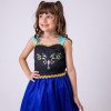 TECIDO 100% POLIESTER  Saia cetim com tule gliter   ACOMPANHA CAPA FROZEN, AVENTURA CONGELANTE, OLAF, ELSA, ANA, GELO   Confeccionado em tecido misto possui forro em poliéster e algodão para não incomodar a criança e proporcionando um caimento incrível e sofisticado, possui gola redonda, comprimento médio, mangas curtas e saia com glitter, possui elástico nas costas para melhor ajuste, acabamento com lindo laço na parte posterior do vestido completa o look dos sonhos!Cuidado Produto Delicado. Exige cuidado tanto no uso como na lavagem que deve ser feita a mão jamais lavagem a máquinaCuidado ao Vestir a criança se Forçar para entrar ou Puxar com força o tecido pode esgarçar a costura sendo assim NÃO REALIZAREMOS TROCA.   * Medidas podem variar em até 4cm * Caso queira o vestido mais armado, recomendamos o uso do saiote ou anágua de armação, disponível no nosso site na categoria acessórios. * Tiara vendida separadamente, disponível em nosso site na categoria acessórios. * Calçados vendido separadamente, disponível em nosso site na categoria calçados. * LEMBRANDO QUE PODERA HAVER VARIAÇÃO DE TONALIDADE DO PRODUTO DEPENDENDO DA TELA DO SEU DISPOSITIVO