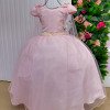Tecido: Techno Sport Forro/ Tule: 100% PoliesterUm modelo digno de princesa, criado para transformar cada momento especial em um verdadeiro conto de fadas. Detalhes que encantam: Laço nas costas: um toque cheio de charme. Lastex ajustável: garante caimento perfeito e máximo conforto. Tule sobre os ombros: sofisticação e delicadeza em cada movimento. Cinto em pérolas: detalhe sutil que valoriza a cintura e completa o look.Perfeito para casamentos, aniversários e eventos onde sua pequena deve ser o centro das atenções.  Atenção: As medidas podem variar em até 2cm. Recomendamos sempre consultar a tabela de medidas antes da compra para evitar erros. Para um volume extra, indicamos o uso de saiote de armação, vendido separadamente na categoria acessórios. Tiara e outros acessórios não acompanham o produto, mas estão disponíveis em nosso site. Calçado vendido separadamente, disponível na seção de calçados.As cores do produto podem sofrer variações de tonalidade conforme a configuração da tela do seu dispositivo.