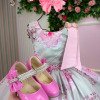 Um vestido encantador, feito para transformar qualquer momento em um verdadeiro conto de fadas!Com estampa floral delicada em tons de rosa e verde claro, o modelo traz um toque romântico e sofisticado. O busto apresenta detalhes com pregas e pequenas pérolas, enquanto a cintura é marcada com um cinto de pérolas que realça o caimento da saia em camadas de tule leve e esvoaçante. Nas costas, o charme fica por conta do laço rosa volumoso e das alcinhas cruzadas com lastex confortável, garantindo ajuste perfeito e delicadeza em cada detalhe.   Ideal para festas, aniversários e ensaios fotográficos. Detalhes que encantam  Busto com bordado em matelassê e mini pérolas aplicadas à mão  Cinto com pérolas na cintura, valorizando o caimento da saia  Saia em camadas de tule suave, com movimento leve e delicado Estampa floral em tons de rosa e verde claro, super feminina  Laço grande nas costas com acabamento perfeito  Alças cruzadas e lastex nas costas para conforto e melhor ajuste   Um vestido pensado para brilhar em cada detalhe — delicado, romântico e digno de uma verdadeira princesa! Informações Importantes  As medidas podem variar em até 2cm. Recomendamos sempre consultar a tabela de medidas antes da compra para evitar erros. Tecido Tecnosport 100% poliester Para um volume extra, indicamos o uso de saiote de armação, vendido separadamente na categoria Acessórios. Tiara e outros acessórios não acompanham o produto, mas estão disponíveis em nosso site. Calçado vendido separadamente, disponível na categoria Calçados As cores do produto podem sofrer variações de tonalidade conforme a configuração da tela do seu dispositivo.