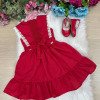 Um modelo clássico e encantador, feito para brilhar em momentos especiais.O vestido infantil valeria combina elegância e delicadeza em cada detalhe — ideal para festas, casamentos, batizados, aniversários e celebrações em família. Descrição detalhada: Modelagem: Vestido evasê com babado na barra, proporcionando movimento e volume na medida certa. Tecido: Techno ligth 100% poliester de alta qualidade, com leve brilho e toque macio, garantindo conforto e caimento perfeito. Detalhes: Aplicações de renda branca trabalhada, criando um visual romântico e delicado. Laço de pérolas no centro da cintura, com acabamento dourado e brilho elegante Fechamento com lastex, que se ajusta ao corpo da criança, oferecendo conforto e mobilidade. Laço para amarrar na cintura, ajustável e decorativo. Acabamento: Costuras reforçadas e acabamento premium, ideal para uso prolongado e eventos formais. Evitar puxar o lastex ou o tecido com força ao vestir.     Um vestido que une charme, qualidade e conforto — perfeito para transformar qualquer momento em um registro inesquecível! Informações Importantes  As medidas podem variar em até 2cm. Recomendamos sempre consultar a tabela de medidas antes da compra para evitar erros. Para um volume extra, indicamos o uso de saiote de armação, vendido separadamente na categoria Acessórios. Tiara e outros acessórios não acompanham o produto, mas estão disponíveis em nosso site. Calçado vendido separadamente, disponível na categoria Calçados As cores do produto podem sofrer variações de tonalidade conforme a configuração da tela do seu dispositivo.