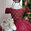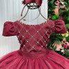 Vestido Infantil Longo Gabriela Um verdadeiro encanto para ocasiões especiais!Esse modelo longo traz sofisticação e delicadeza, perfeito para brilhar em casamentos, festas de aniversário, batizados, formaturas e ensaios fotográficos. Detalhes do vestido: Corpo estruturado em tecido acetinado com bordado em pedrarias formando um delicado trabalho geométrico; Pérolas aplicadas que dão ainda mais sofisticação ao busto; Saia longa com várias camadas de tule, criando volume e movimento de princesa; Mangas discretas, trazendo romantismo ao look;Destaques: Confortável e ao mesmo tempo elegante; Modelo que valoriza a silhueta infantil com caimento impecável; Ideal para meninas que querem se sentir como princesas em um dia especial.   Ocasiões indicadas:Casamentos, daminhas, aniversários temáticos, festas de gala infantis, ensaios fotográficos ou qualquer evento onde o destaque é garantido!  Informações Importantes As medidas podem variar em até 2cm. Recomendamos sempre consultar a tabela de medidas antes da compra para evitar erros. Tecido Tafeta/ Cetim 100% Poliester Para um volume extra, indicamos o uso de saiote de armação, vendido separadamente na categoria Acessórios. Tiara e outros acessórios não acompanham o produto, mas estão disponíveis em nosso site. Calçado vendido separadamente, disponível na categoria Calçados. As cores do produto podem sofrer variações de tonalidade conforme a configuração da tela do seu dispositivo.