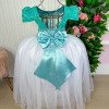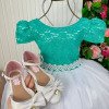 Essa coleção foi criada para transformar cada momento especial em um verdadeiro conto de fadas. Os vestidos combinam a intensidade do verde tiffany com a pureza e delicadeza do branco neve, resultando em peças que esbanjam charme, romantismo e sofisticação. Detalhes do Vestido Corpo em renda verde tiffany com mangas curtas, trazendo um ar clássico e elegante. Saia ampla em camadas de tule branco, que garante volume e movimento delicado. Cintura marcada com cinto em pérolas, acrescentando brilho e sofisticação. Tecido 100% poliester.Perfeita para: Festas de fim de ano (Natal e Réveillon); Batizados e celebrações religiosas; Aniversários temáticos; Ensaios fotográficos e ocasiões especiais. Uma coleção que une tradição e delicadeza, ideal para quem busca um visual atemporal, romântico e inesquecível para as pequenas princesas. Informações Importantes As medidas podem variar em até 2cm. Recomendamos sempre consultar a tabela de medidas antes da compra para evitar erros. Para um volume extra, indicamos o uso de saiote de armação, vendido separadamente na categoria Acessórios. Tiara e outros acessórios não acompanham o produto, mas estão disponíveis em nosso site. Calçado vendido separadamente, disponível na categoria Calçados As cores do produto podem sofrer variações de tonalidade conforme a configuração da tela do seu dispositivo.