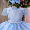 Confeccionado em tecido misto possui forro em poliéster e algodão para não incomodar a criança e proporcionando um caimento incrível e sofisticado, possui gola redonda, comprimento médio, mangas curtas, possui elástico nas costas para melhor ajuste, acabamento com lindo laço na parte posterior do vestido completa o look dos sonhos! AZUL, TULE, FLOR, FLORZINHA. * Medidas podem variar em até 4cm * Caso queira o vestido mais armado, recomendamos o uso do saiote ou anágua de armação, disponível no nosso site na categoria acessórios. * Tiara vendida separadamente, disponível em nosso site na categoria acessórios.