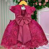Confeccionado em tecido misto possui forro em poliéster e algodão para não incomodar a criança e proporcionando um caimento incrível e sofisticado, possui gola redonda, comprimento médio, mangas curtas, possui elástico nas costas para melhor ajuste, acabamento com lindo laço na parte posterior do vestido completa o look dos sonhos!   A RENDA PODE VARIAR DE ACORDO COM O LOTE!   * Medidas podem variar em até 4cm * Caso queira o vestido mais armado, recomendamos o uso do saiote ou anágua de armação, disponível no nosso site na categoria acessórios. * Tiara vendida separadamente, disponível em nosso site na categoria acessórios. * Calçados vendido separadamente, disponível em nosso site na categoria calçados. * LEMBRANDO QUE PODERA HAVER VARIAÇÃO DE TONALIDADE DO PRODUTO DEPENDENDO DA TELA DO SEU DISPOSITIVO