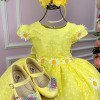 TECIDO COMPOSIÇÃO 100% POLIESTER/ FORRO CORPO 100%/ FORRO SAIA 100% POLIESTERConfeccionado em tecido misto possui forro em poliéster e algodão para não incomodar a criança e proporcionando um caimento incrível e sofisticado, possui gola redonda, comprimento médio, mangas curtas, possui elástico nas costas para melhor ajuste, acabamento com lindo laço na parte posterior do vestido completa o look dos sonho MARGARIDAS,JARDIM ENCANTADO,BOSQUE ENCANTADO * Medidas podem variar em até 4cm * Caso queira o vestido mais armado, recomendamos o uso do saiote ou anágua de armação, disponível no nosso site na categoria acessórios. * Tiara vendida separadamente, disponível em nosso site na categoria acessórios. * Calçados vendido separadamente, disponível em nosso site na categoria calçados. * LEMBRANDO QUE PODERA HAVER VARIAÇÃO DE TONALIDADE DO PRODUTO DEPENDENDO DA TELA DO SEU DISPOSITIVO