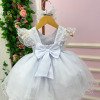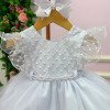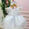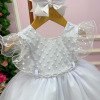 Vestido Infantil Branco – Delicadeza que Encanta Esse vestido é a definição de clássico infantil com toque de princesa. Pensado para momentos especiais, ele une suavidade, elegância e um visual que fica lindo tanto ao vivo quanto nas fotos. Detalhes que fazem a diferença• Busto em tule bordado com desenhos em losangulos delicados e aplicações sutis de perolas.• Modelagem mangas cisnei em tule, leve e confortável para a criança.• Cintura com acabamento em pérolas, trazendo um charme refinado ao visual.• Saia rodada em camadas de tule, volumosa na medida certa, com caimento leve e etéreo. Ideal paraBatizados, aniversários, daminhas, sessões fotográficas e eventos especiais em que o branco representa pureza e elegância. Informações Importantes As medidas podem variar em até 2cm. Recomendamos sempre consultar a tabela de medidas antes da compra para evitar erros. Tecido 100% poliester Para um volume extra, indicamos o uso de saiote de armação, vendido separadamente na categoria Acessórios. Tiara e outros acessórios não acompanham o produto, mas estão disponíveis em nosso site. Calçado vendido separadamente, disponível na categoria Calçados As cores do produto podem sofrer variações de tonalidade conforme a configuração da tela do seu dispositivo.