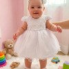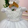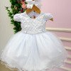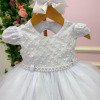 Vestido Infantil Branco – Delicadeza que Encanta Esse vestido é a definição de clássico infantil com toque de princesa. Pensado para momentos especiais, ele une suavidade, elegância e um visual que fica lindo tanto ao vivo quanto nas fotos. Detalhes que fazem a diferença• Busto em tule bordado com desenhos em losangulos delicados e aplicações sutis de pérolas.• Mangas, leve e confortável para a criança.• Cintura com acabamento em pérolas, trazendo um charme refinado ao visual.• Saia rodada em camadas de tule, volumosa na medida certa, com caimento leve e etéreo. Ideal paraBatizados, aniversários, daminhas, sessões fotográficas e eventos especiais em que o branco representa pureza e elegância. Informações Importantes As medidas podem variar em até 2cm. Recomendamos sempre consultar a tabela de medidas antes da compra para evitar erros. Tecido 100% poliester Para um volume extra, indicamos o uso de saiote de armação, vendido separadamente na categoria Acessórios. Tiara e outros acessórios não acompanham o produto, mas estão disponíveis em nosso site. Calçado vendido separadamente, disponível na categoria Calçados As cores do produto podem sofrer variações de tonalidade conforme a configuração da tela do seu dispositivo.