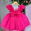 Confeccionado em tecido misto possui forro em poliéster e algodão para não incomodar a criança e proporcionando um caimento incrível e sofisticado, possui gola redonda, comprimento médio, mangas curtas de tule, possui elástico nas costas para melhor ajuste, acabamento com lindo laço na parte posterior do vestido completa o look dos sonhos!   * Medidas podem variar em até 4cm. * Caso queira o vestido mais armado, recomendamos o uso do saiote ou anágua de armação, disponível no nosso site na categoria acessórios.* Tiara vendida separadamente, disponível em nosso site na categoria acessórios. * Calçados vendido separadamente, disponível em nosso site na categoria calçados.   * LEMBRANDO QUE PODERA HAVER VARIAÇÃO DE TONALIDADE DO PRODUTO DEPENDENDO DA TELA DO SEU DISPOSITIVO