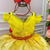 Confeccionado em tecido misto possui forro em poliéster e algodão para não machucar a criança e proporcionando um caimento incrível e sofisticado, possui gola redonda, comprimento médio, mangas curtas, possui elástico nas costas para melhor ajuste, acabamento com lindo laço na parte posterior do vestido completa o look dos sonhos! A RENDA PODE VARIAR DE ACORDO COM O LOTE * Acompanha Luva * Medidas podem variar em até 4cm * Caso queira o vestido mais armado, recomendamos o uso do saiote ou anágua de armação, disponível no nosso site na categoria acessórios. * Tiara vendida separadamente, disponível em nosso site na categoria acessórios.