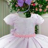 TECIDO 100% POLIÉSTER Confeccionado em tecido misto possui forro em poliéster e algodão para não incomodar a criança e proporcionando um caimento incrível e sofisticado, possui gola redonda, comprimento médio, mangas curtas,  contém, também, elástico nas costas para melhor ajuste, acabamento com lindo laço na parte posterior do vestido completa o look dos sonhos!   * Medidas podem variar em até 4cm. * Caso queira o vestido mais armado, recomendamos o uso do saiote ou anágua de armação, disponível no nosso site na categoria acessórios. * Tiara vendida separadamente, disponível em nosso site na categoria acessórios. * Calçados vendido separadamente, disponível em nosso site na categoria calçados.   * LEMBRANDO QUE PODERA HAVER VARIAÇÃO DE TONALIDADE DO PRODUTO DEPENDENDO DA TELA DO SEU DISPOSITIVO